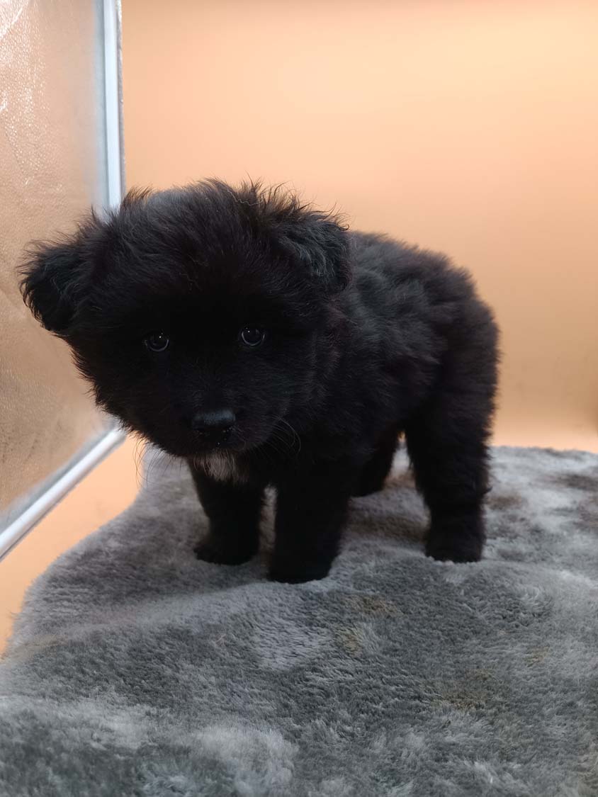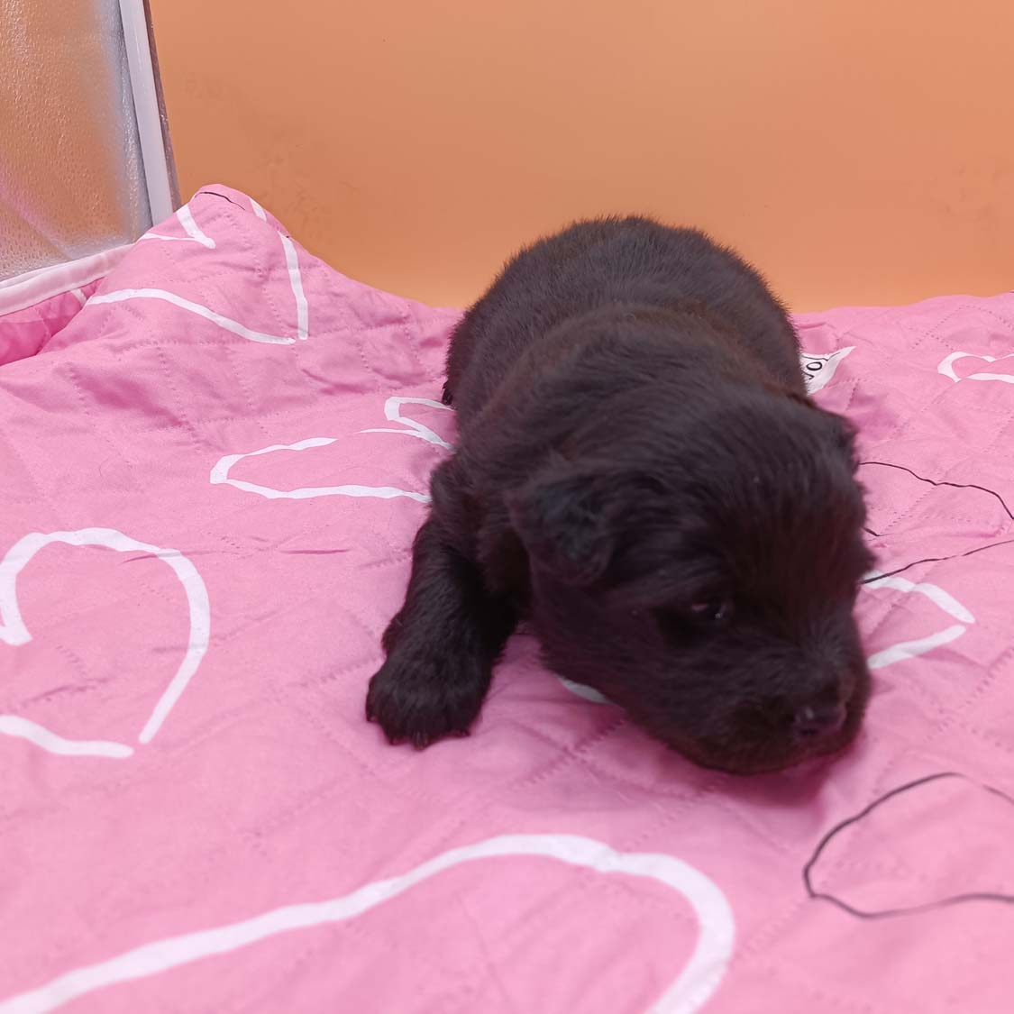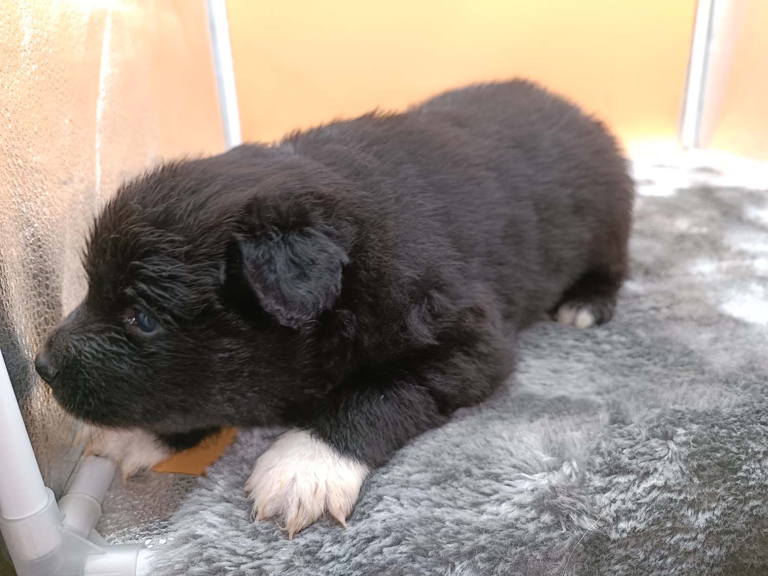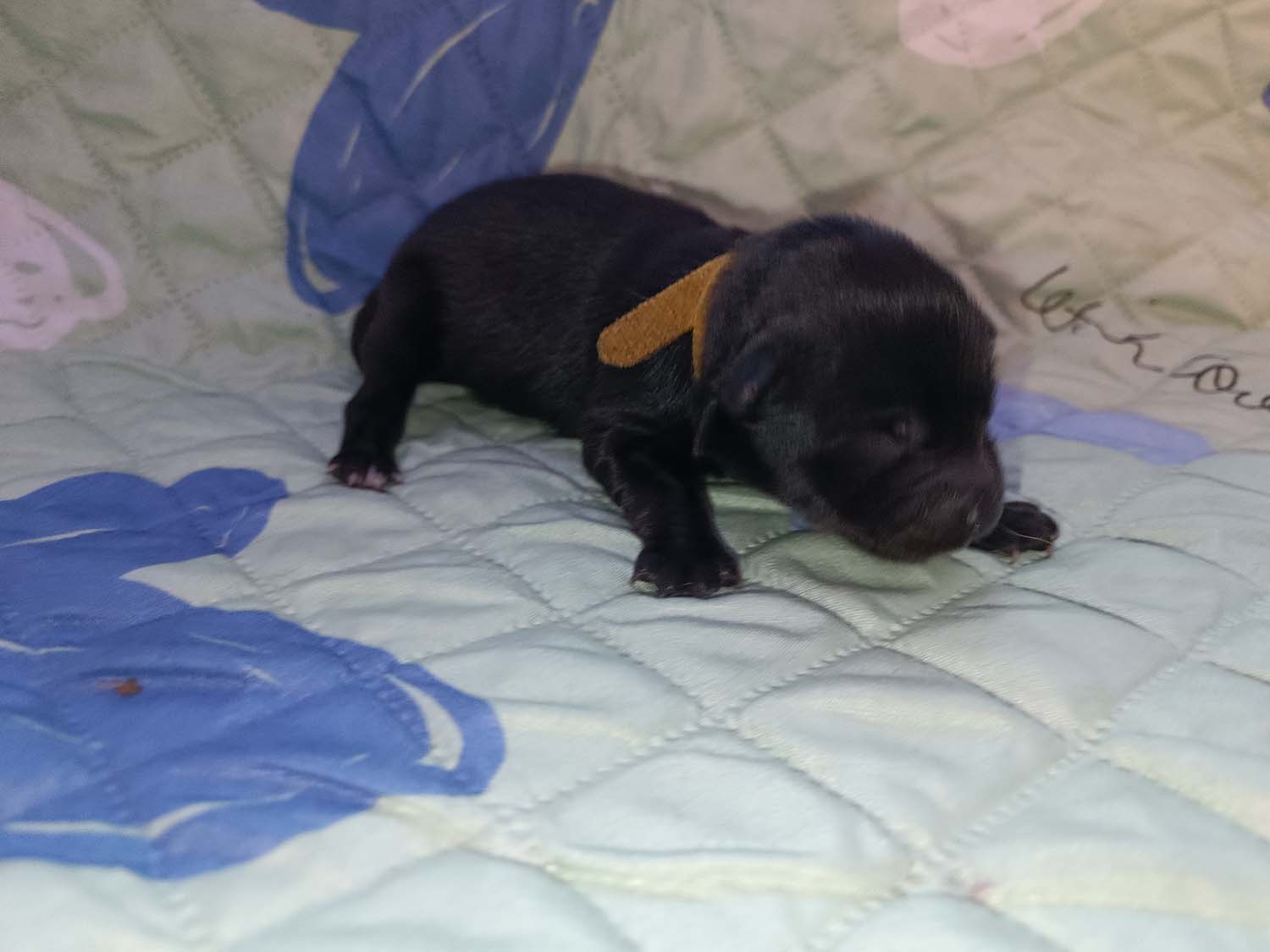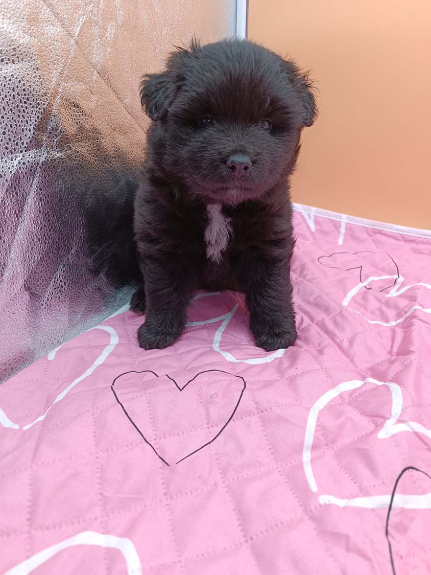 Bei der 3. Hündin bin ich mir noch nicht sicher welche Farbe sie mal haben wird. Ich denke schwarz, die Besitzerin vom Deckrüden meint sie erkenne ganz dezente Tan-Abzeichen. Ich sehe sie nicht wirklich, ich könnte theoretisch einen Gen-Test machen, dauert etwa 4-5 Wochen, bis dahin vermute ich aber dass wenn es wirklich tan abzeichen sind, sie deutlicher werden. Diese Abzeichen bilden sich auch erst innerhalb des ersten Lebensjahres richtig aus.