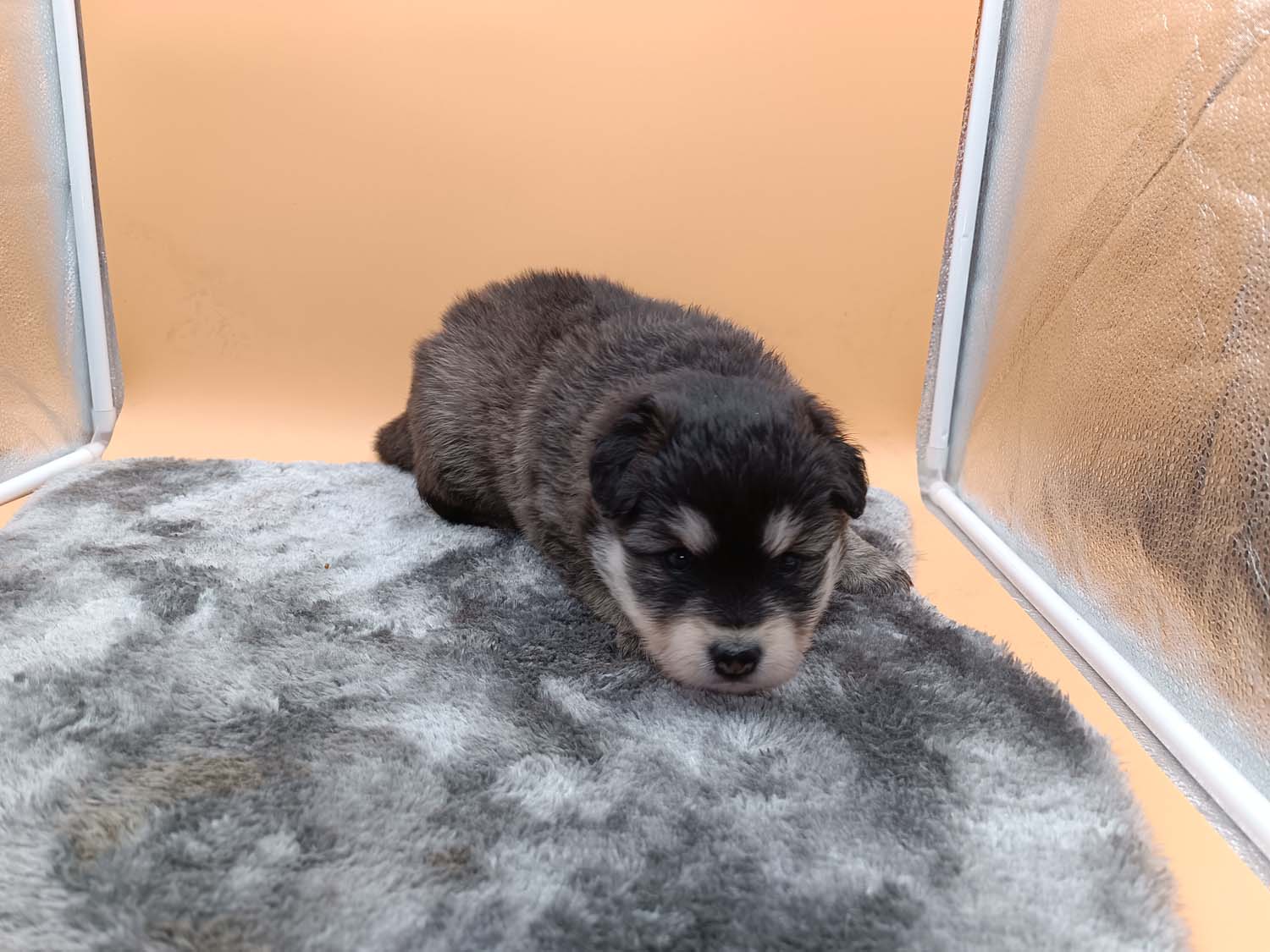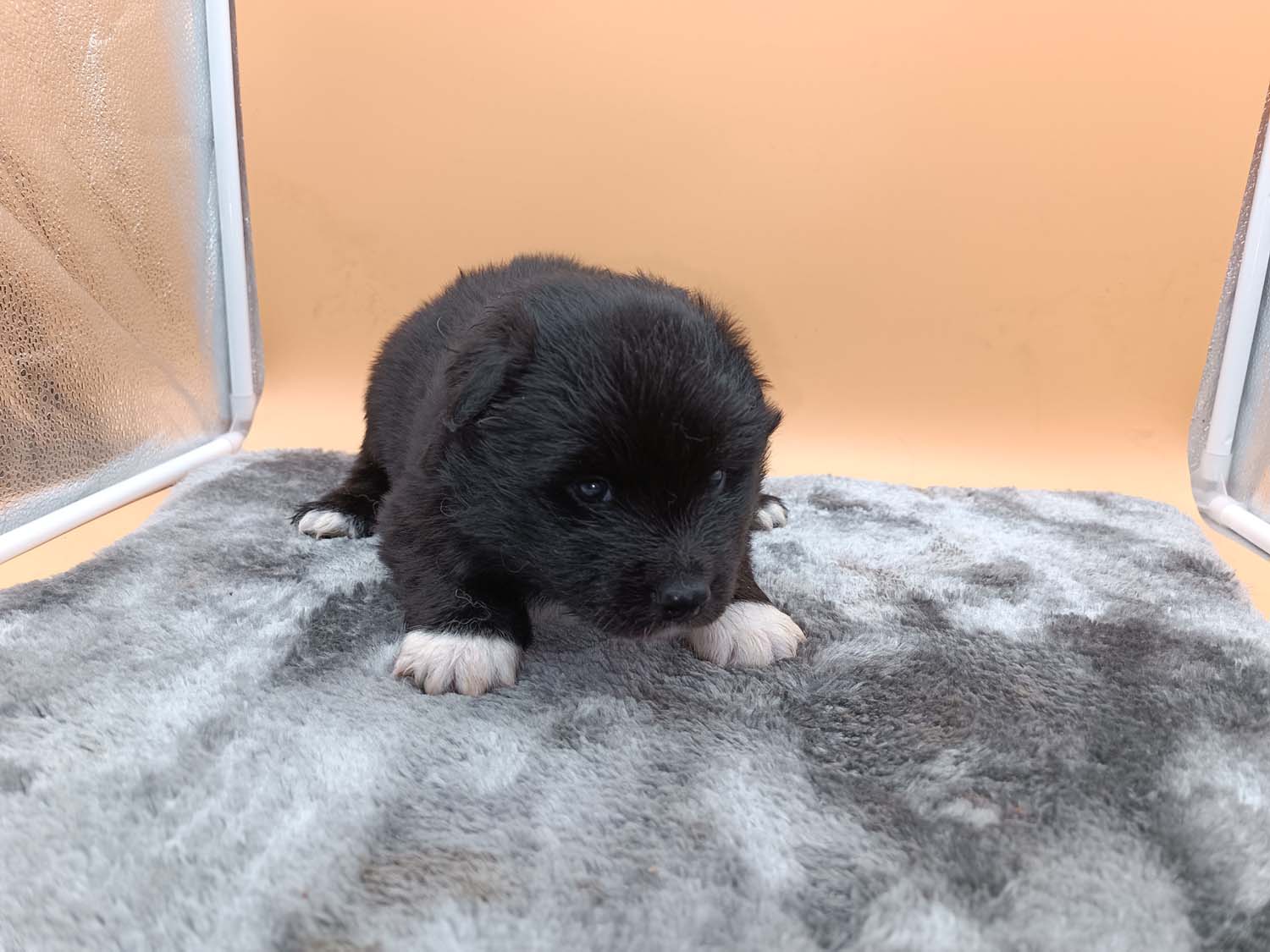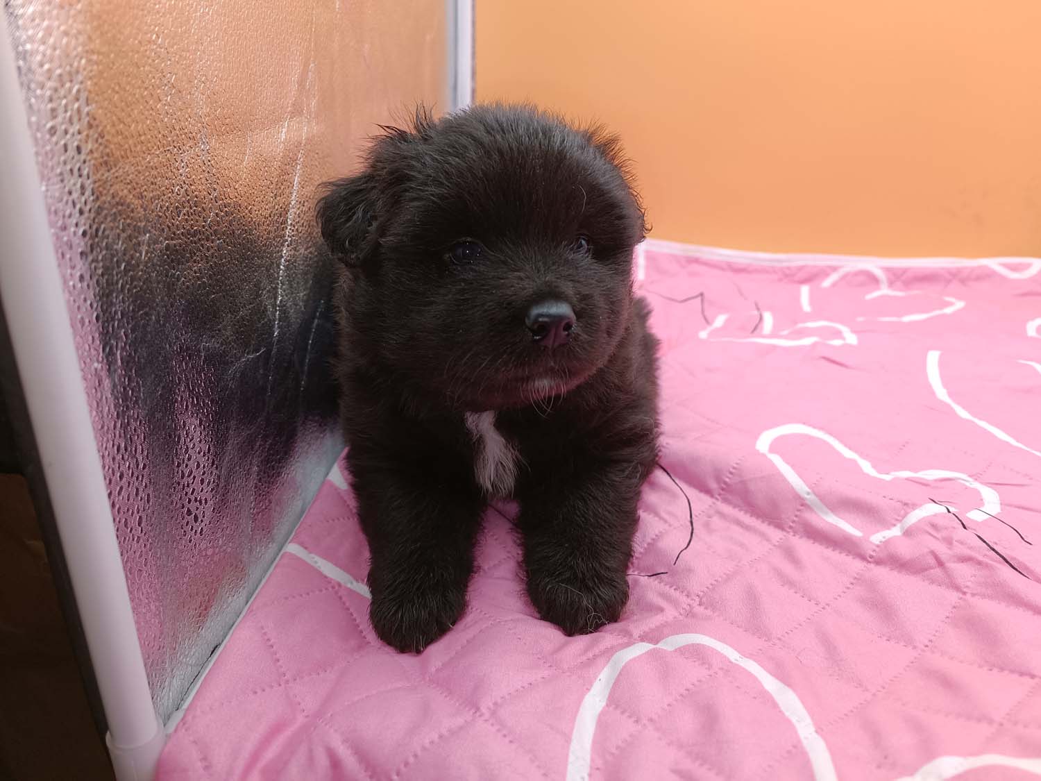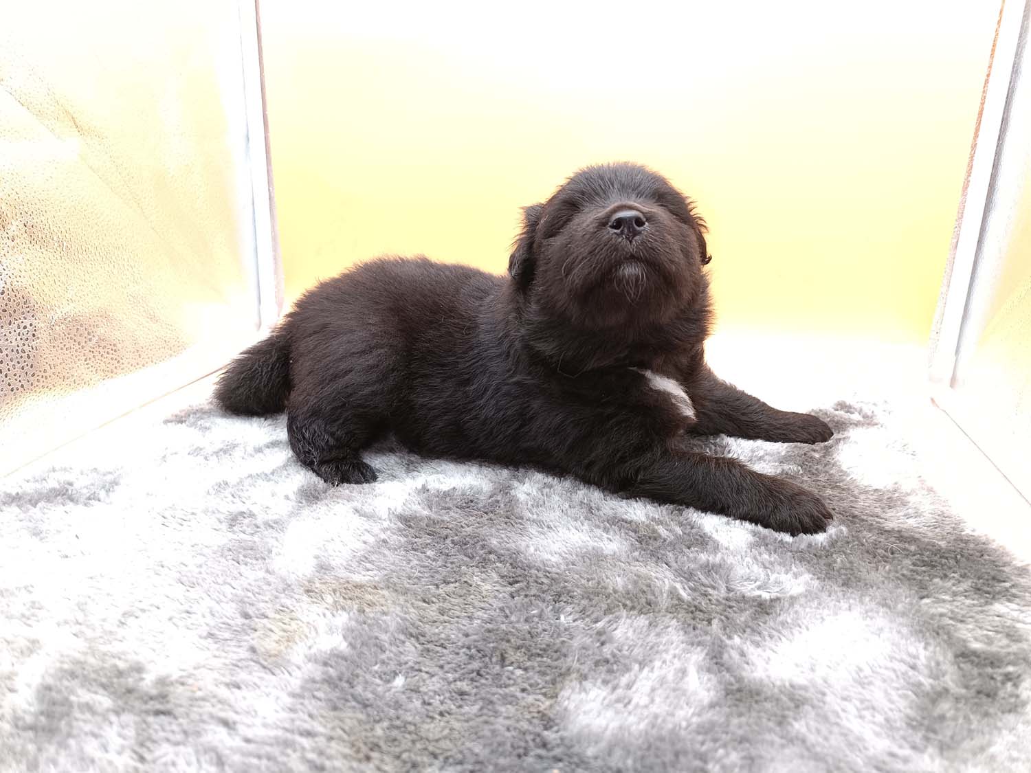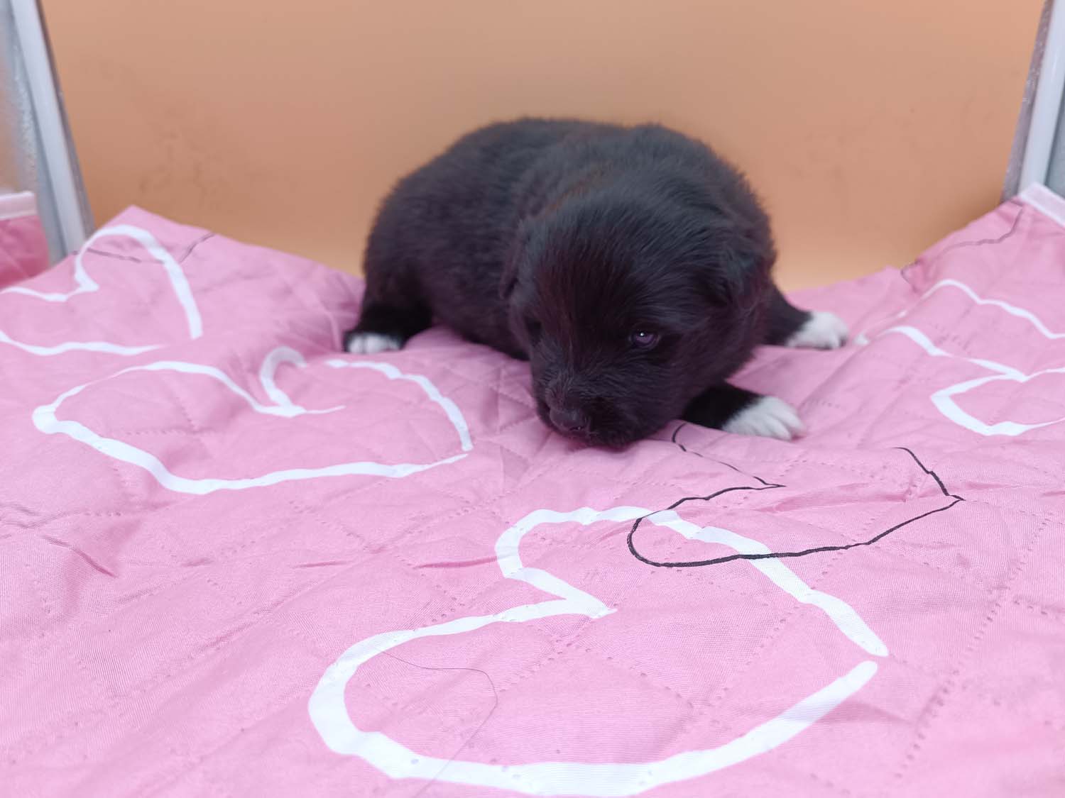 Bei der 3. Hündin bin ich mir noch nicht sicher welche Farbe sie mal haben wird. Ich denke schwarz, die Besitzerin vom Deckrüden meint sie erkenne ganz dezente Tan-Abzeichen. Ich sehe sie nicht wirklich, ich könnte theoretisch einen Gen-Test machen, dauert etwa 4-5 Wochen, bis dahin vermute ich aber dass wenn es wirklich tan abzeichen sind, sie deutlicher werden. Diese Abzeichen bilden sich auch erst innerhalb des ersten Lebensjahres richtig aus.