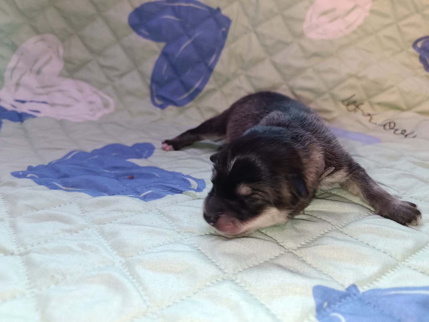 Die Welpen sind leider überhaupt nicht kooperativ wenn es um das Fotografieren geht. Von 50 Fotos ist 1 teilweise akzeptabel. Interessant finde ich dass man jetzt schon kleine Unterschiede merkt. Der kleine schwarze Rüde war beim fotografieren absolut gelassen, wären die erste Hündin lautstark ihren Unmut von sich gab.