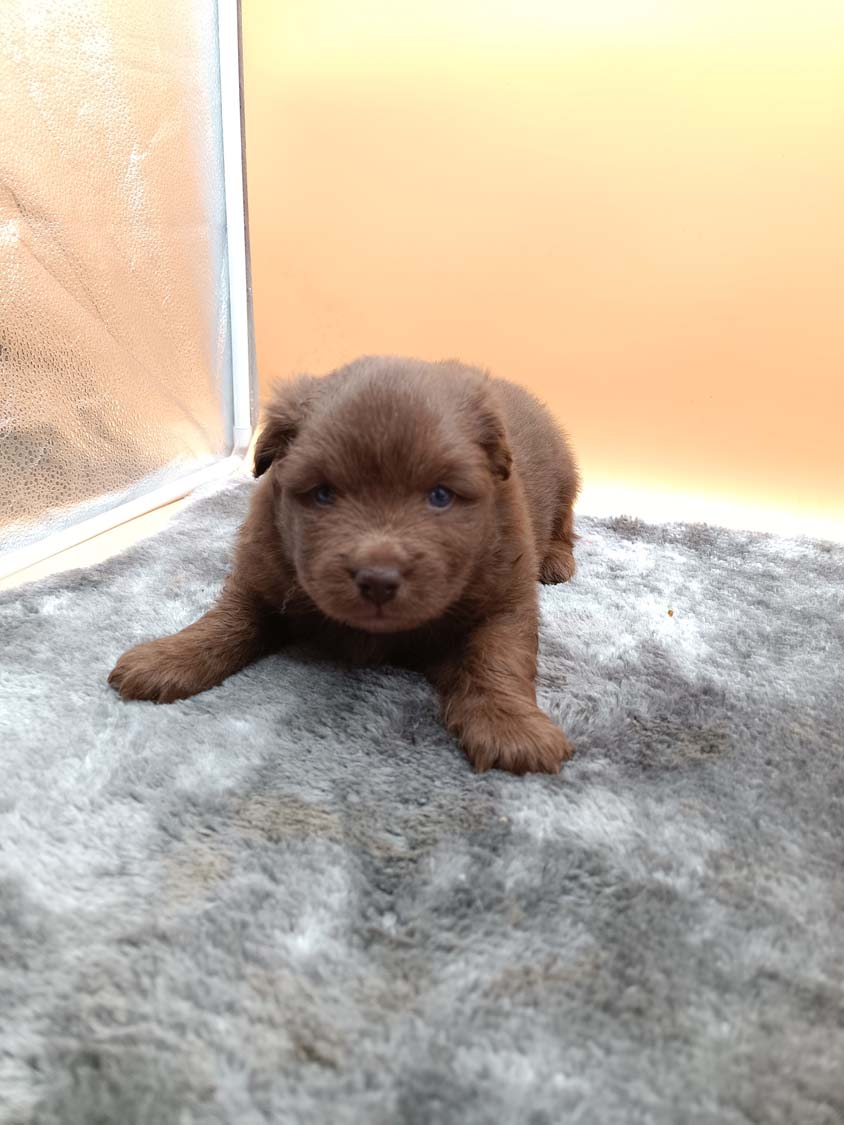 Hier ist mal ein Foto dass mir die Mitbesitzer vom Deckrüden gegeben haben, wie man sieht, hat sich der Welpe "leicht" verändert, es ist manchmal schwer in den ersten Wochen die Farbe wirklich zu bestimmen.