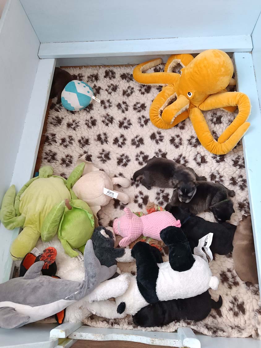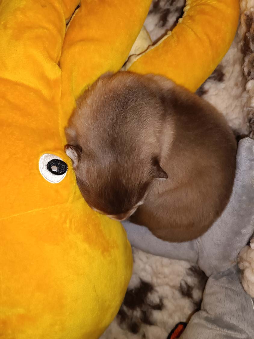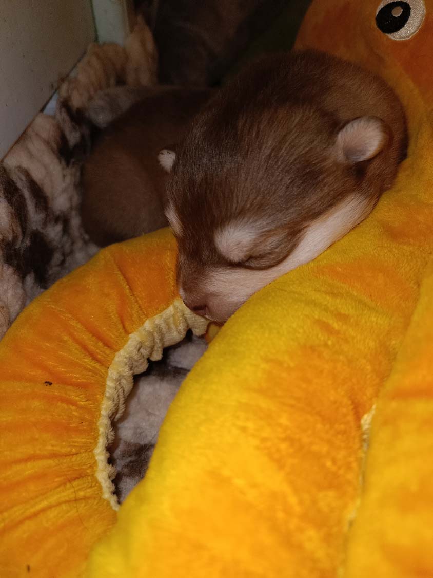 Die Welpen wachsen und Gedeihen und die ersten haben bereits die 500g Marke geknackt.