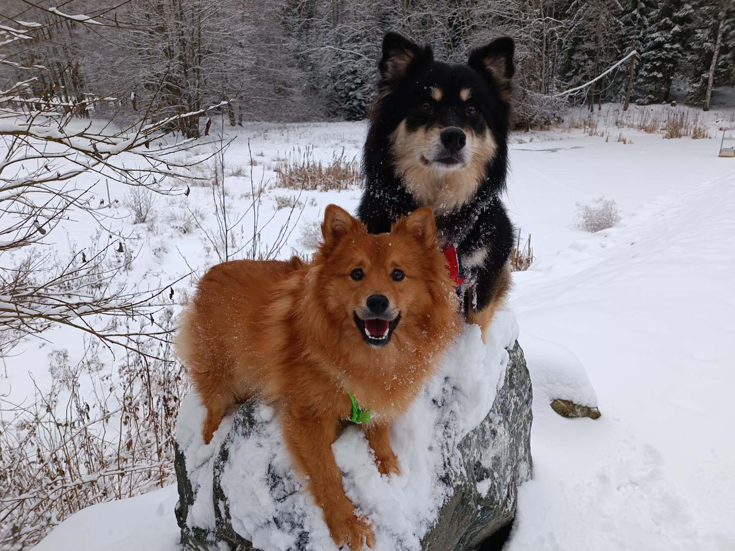 Und schon haben wir 2026. Heute waren wir beim Ultraschall. Hexe hat es wie immer spannend gemacht. Sie weigert sich ihre schlanke Figur aufzugeben. Aber der Ultraschall hat es gezeigt, Hexe hat Untermieter an Board. Leider habe ich vor Aufregung vergessen ein Foto vom Ultraschall zu machen. Asche über mein Haupt. Momentan genießen die Hunde den Schnee.